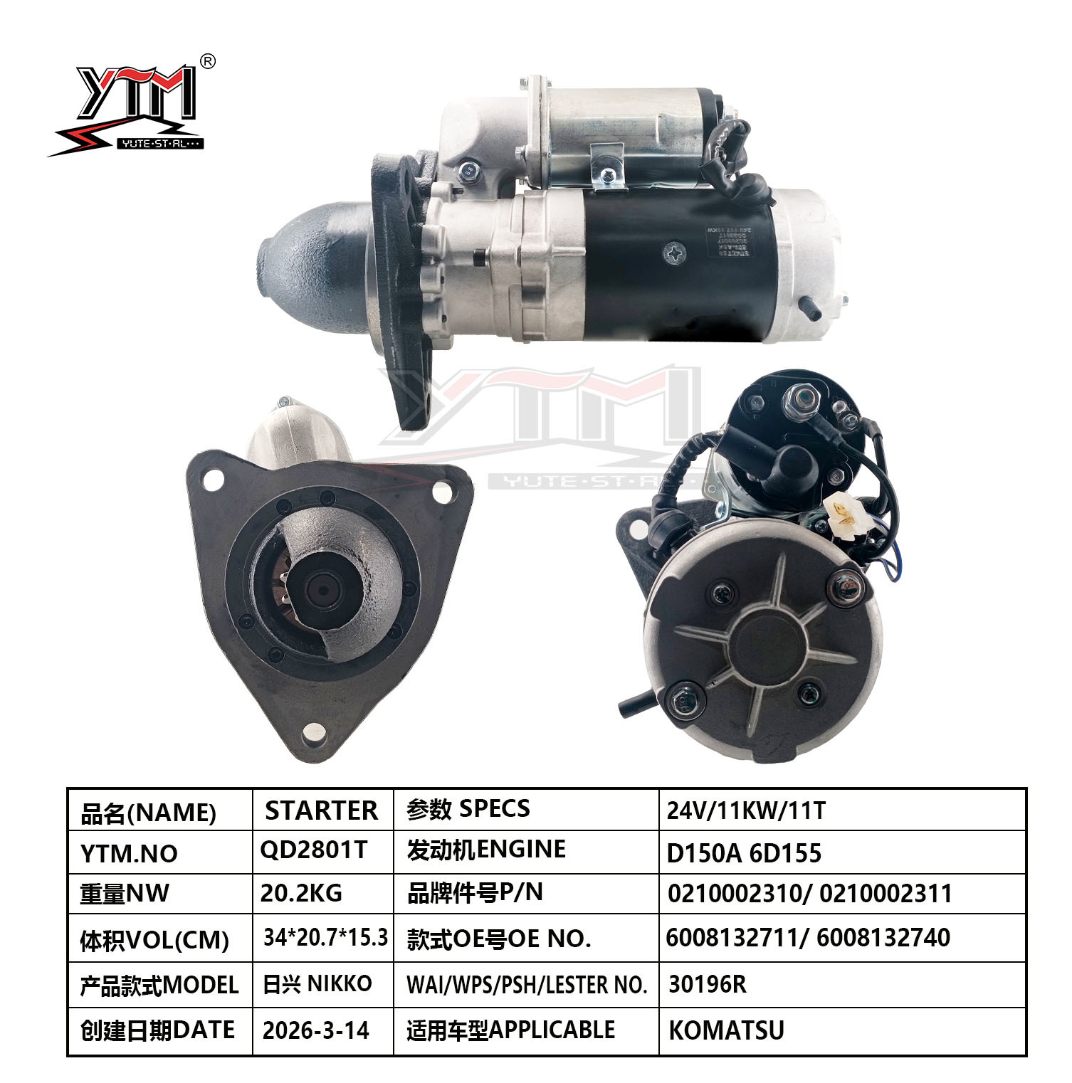 | Markeren: | 24V diesel engine starter motor,D150A 6D155 starter motor,NIKKO engine starter motor with warranty |